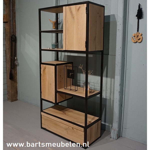 Wat een stoere kast he? Deze vakkenkast eikenhout en staal 7.