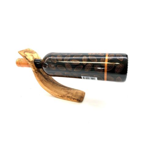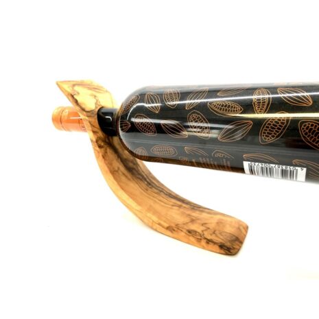 Wijnfleshouder Wave van olijfhout. Een bijzonder soort evenwichtsoefening! De wijnfleshouder als golf in ons assortiment is geweldig en tegelijkertijd een zeer decoratieve blikvanger. De mooi generfde, golvende flessenhouder werkt alleen in combinatie met een gevulde fles. Het is daarom een goed idee om altijd een fles in huis te hebben.Deze decoratieve wijnfleshouder is een leuk cadeau (misschien bij een goede fles wijn?) of als blikvanger in huis.