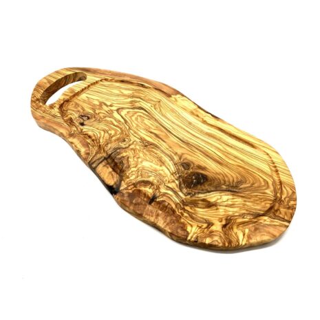 Rustieke steakboard ca. 45 – 49 cm met olijfhouten sapgroef en griptab Een zwoele zomeravond, aardige mensen, een grill, sappige steaks en een koel biertje… Deze rustiek ogende steakboard, met olijfhouten handvat en sapgroef , is een hit op elke barbecue avond. Maar niet alleen heerlijk bruikbaar voor de barbecue-avond, maar ook ideaal als handige snijplank of voor het serveren van worst en kaas.