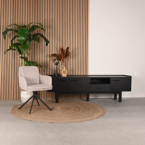 Eetkamerstoel Joy van LABEL51 is een draaibare armstoel uitgevoerd in de populaire stof bouclé in een naturelkleur. Joy is een prachtexemplaar en daarnaast ook van alle gemakken voorzien. De 360 graden draaibare zitting voorzien van armleuningen, gecombineerd met de zwarte spinpoot maakt Joy tot een unieke en zeer functionele eetkamerstoel.