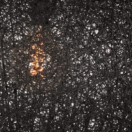 Hanglamp Twist bestaat uit een prachtige bolvorm van zwart vlasdraad en heeft een diameter van 30 cm. Het vlasdraad zorgt voor een speels lijnenspel en het open-dicht contrast waardoor er een sensationeel lichteffect ontstaat op het moment dat de lamp gaat branden.
