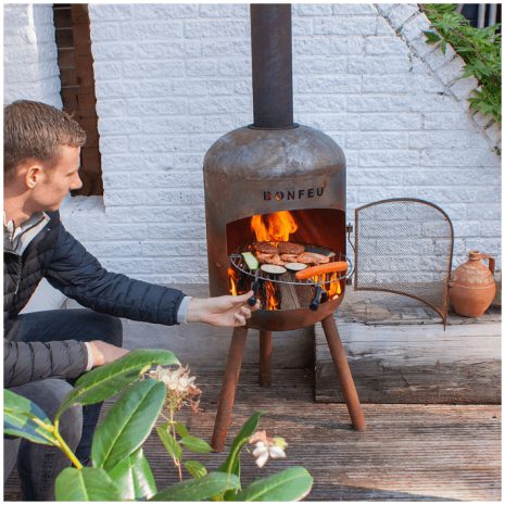 Het unieke aan de BonFeu BonBono is dat deze tuinhaard ook te gebruiken is als barbecue. De BonBono is namelijk uitgerust met een handig, draaibaar grillrooster dat uiteraard gecertificeerd is voor het bereiden van voedsel. Het grillrooster heeft twee handvaten om het draaien en gebruiken van het grillrooster nog makkelijker is. Het grillrooster draai je makkelijk in en uit de tuinhaard waarmee het voedsel op de grill de perfecte garing zal krijgen.