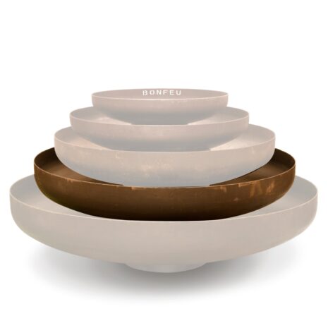 De BonFeu vuurschalen zijn verkrijgbaar in vier verschillende afmetingen, dus er is altijd wel een vuurschaal naar wens te vinden. Niet alleen de diameter van de vuurschaal varieert in afmeting, ook de hoogte neemt toe naarmate de schaal groter wordt.